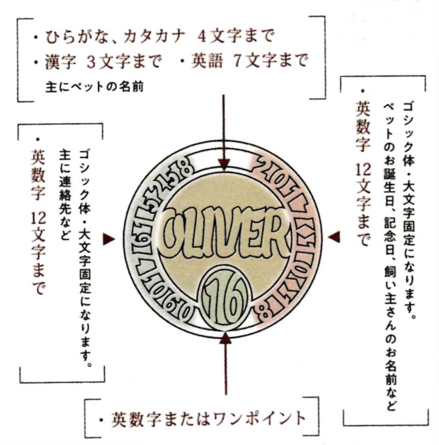ペットの名前はもちろん、飼い主さんの名前や電話番号、生年月日、好きな言葉