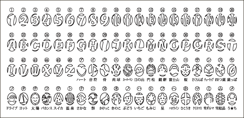 定型以外の特注デザインや特注文字フォントをご希望の場合はお問い合わせお願いいたします。対応の可否を検討させていただきます。